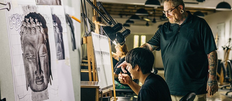Before an ÀNI apprentice even picks up a pencil, they are taught the discipline of how to set up and care for their tools, their easels and their space. Apprentices start learning fundamentals, like how to properly hold a pencil and competently draw a straight line. They progress to perfecting the execution of spheres, cones, cubes and other shapes, as well as understanding the principles of light, draftsmanship and visual perception. The level of competency in these fundamentals can take years to achieve, and this is the key to creating fine art to the level of excellence for which ÀNI Academies are known.